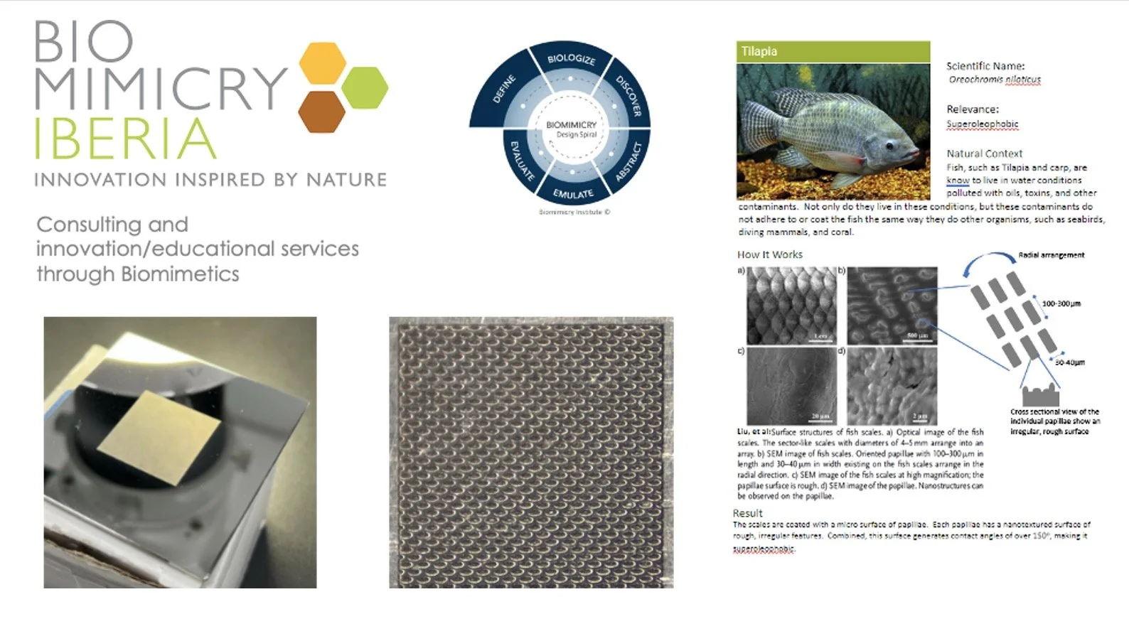 Initial pool of biomimetic microstructured functional surfaces (easy cleaning, very high WCA°), analysis and refining of optimal solution; definition, 3D drawing and implementation of optimal solution on a real demonstrator through femtosecond laser surface-ablation via an external provider.
